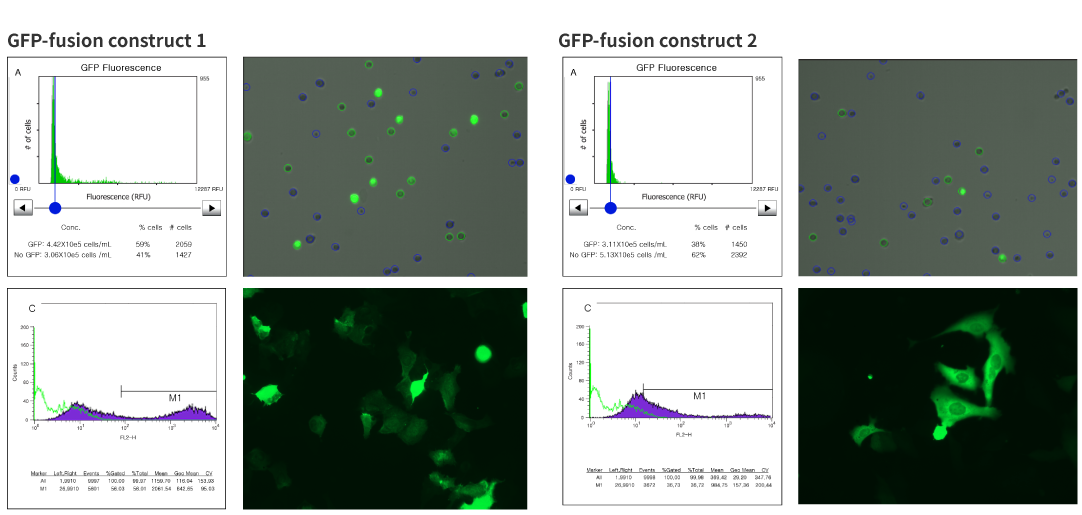 두 플랫폼의 녹색 형광 단백질(GFP) 발현성 비교