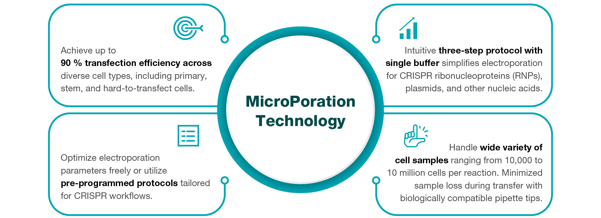 NanoEntek is the original developer of microporation technology, designed to overcome the limitations of traditional electroporation methods using cuvettes. The core of microporation technology lies in its use of a capillary-type electric chamber with a minimal electrode surface area in direct contact with the sample.