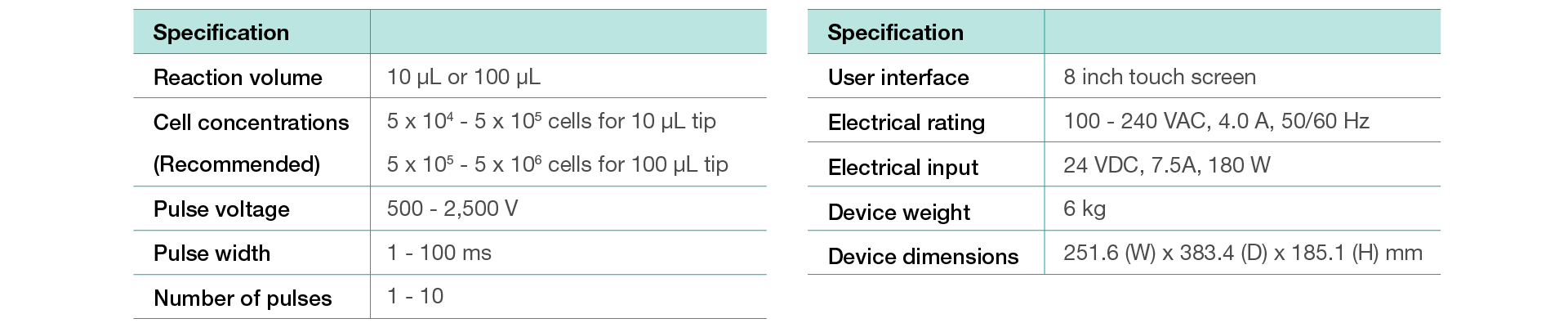 Small electrode surface area and increased gap between electrodes ensure uniform electric field within ExTransfection™ Tip. The insulated capillary minimizes electrolysis during electroporation, enhancing of transfection efficiency and cell viability.