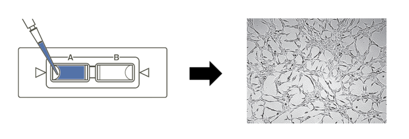 세포를 Trypan blue 시약으로 염색 후 슬라이드에 주입합니다.